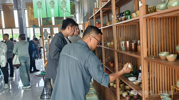 创作骨干们在展厅内驻足欣赏,感受泥土与火焰的艺术魅力。一位高校教师感叹:“井陉窑不仅是历史的遗存,更是当代艺术创作的灵感源泉。”
