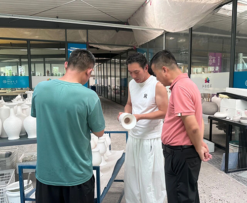 交流中双方就“古法活态传承”达成高度共识,并深入探讨了两大窑口的技艺互补性:定窑以刻花模印技艺闻名于世,在白瓷制作上匠心独运,追求极致纯净与典雅。井陉窑凭借戳印点彩、青剔等特色装饰工艺独树一帜,赋予瓷器独特的艺术表现力,双方一致认为定窑的白瓷底蕴与井陉窑的装饰技艺深度融合,将有望突破传统白瓷的美学边界,创造出既承古韵、又具新意的陶瓷艺术精品。
