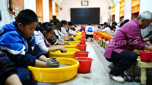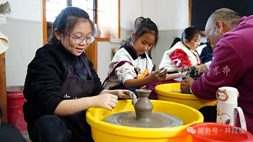 开窑仪式后,“匠心接力”温情上演。研学孩子们在非遗传承人的手把手指导下揉泥、拉坯,小手上沾满陶土,一个个带着泥土温度的陶器渐次成型。