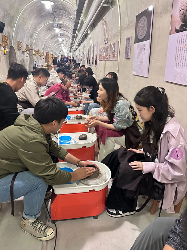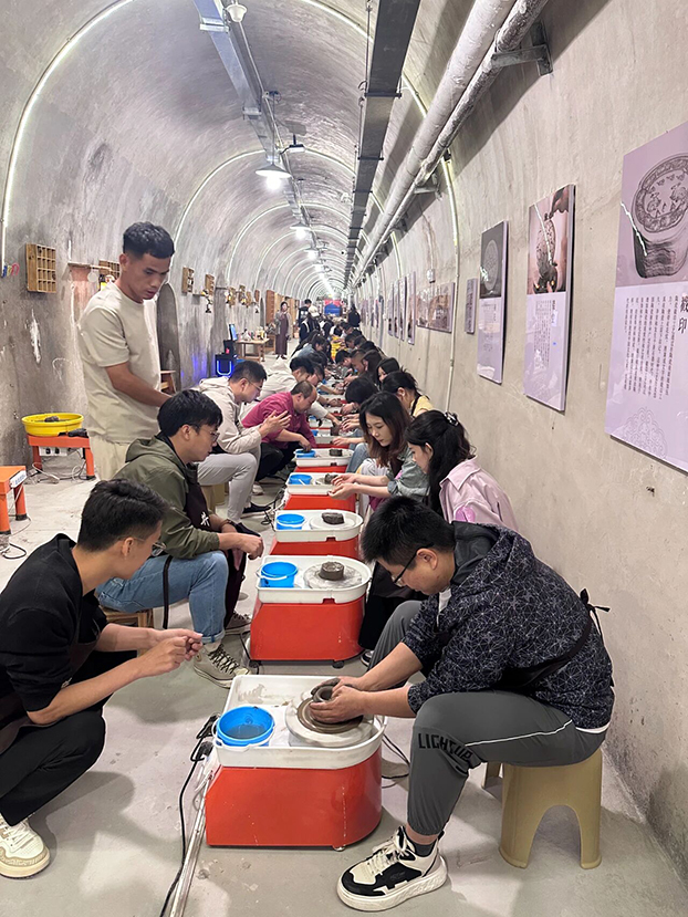 活动的重头戏,也是最能体现井陉窑文化精髓的环节—— “陶”你欢心·指尖传情缘陶艺DIY浪漫登场!嘉宾们在瓷韵旺角荟专业的陶艺体验工坊内两两一组。指尖轻触湿润的陶泥,在转盘的旋转中,在彼此的协作与轻声交流中,共同塑造一件独一无二的陶艺作品。井陉窑传承千年的制瓷技艺,此刻化作传递心意的浪漫媒介。泥土的温度、专注的神情、会心的微笑、偶尔笨拙却充满乐趣的尝试…… 这不仅仅是手工制作,更是在井陉窑深厚文化底蕴的熏陶下,一次心与心深度交流、共同创造美好记忆的独特体验。一件件饱含心意的小作品,成为当晚最温馨动人的“定情信物”。