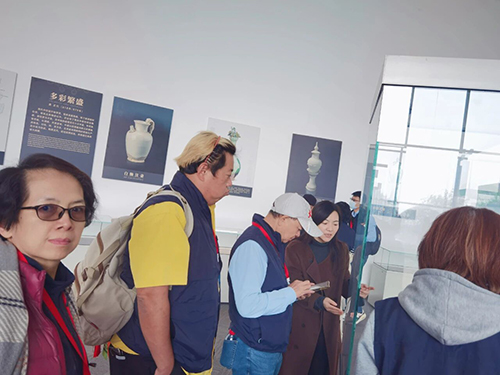 活动首站参观井陉窑博物馆,论及工艺井陉窑最令人惊叹的,是其精白瓷的烧造水准。 在参观中嘉宾们看到,其胎质坚致细白,釉色莹润,类银似雪。它发展出了自己独特的装饰语言:精湛的印花技艺与独特的 “戳印点彩”工艺,于素白釉面上点缀褐彩,为纯净的白瓷世界注入了一抹北方山野的朴拙与灵动。