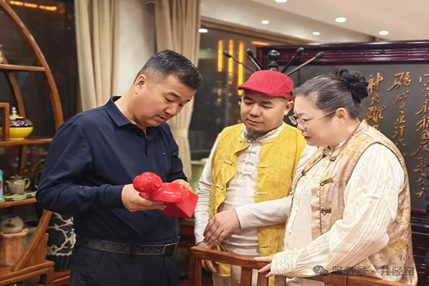 井陉窑文化研究会印会长特邀并设立"何江熊艺术工作室"、联合开发《月光瓷韵》系列文创、启动"水墨丹青话窑火"美育工程。印海廷会长表示:"何老师带来的不仅是墨宝,更是将书画气韵注入陶瓷语汇的革新思维,为非遗活态传承开辟了新维度。"