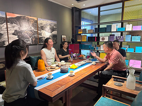 在薛兴嶙大师倾力打造的“弘传定瓷”工作室,井陉窑团队进行了深度考察。从严谨的原料采集、精妙的釉料配比,到精湛的拉坯刻花技艺,团队系统参观了定窑完整的传统工艺体系。薛大师现场展示了其历经艰辛复原的“九玄定器”釉色体系——通过33小时矿物试烧、2000余种矿料实验,成功解密了失传的秘色青黄釉、紫定等珍贵釉色。这些令人惊叹的成果,与井陉窑独特的“戳印填彩”等装饰工艺产生了强烈的艺术共鸣。
