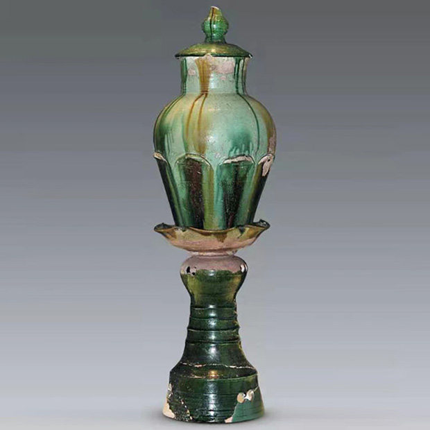 唐 井陉窑三彩塔式罐